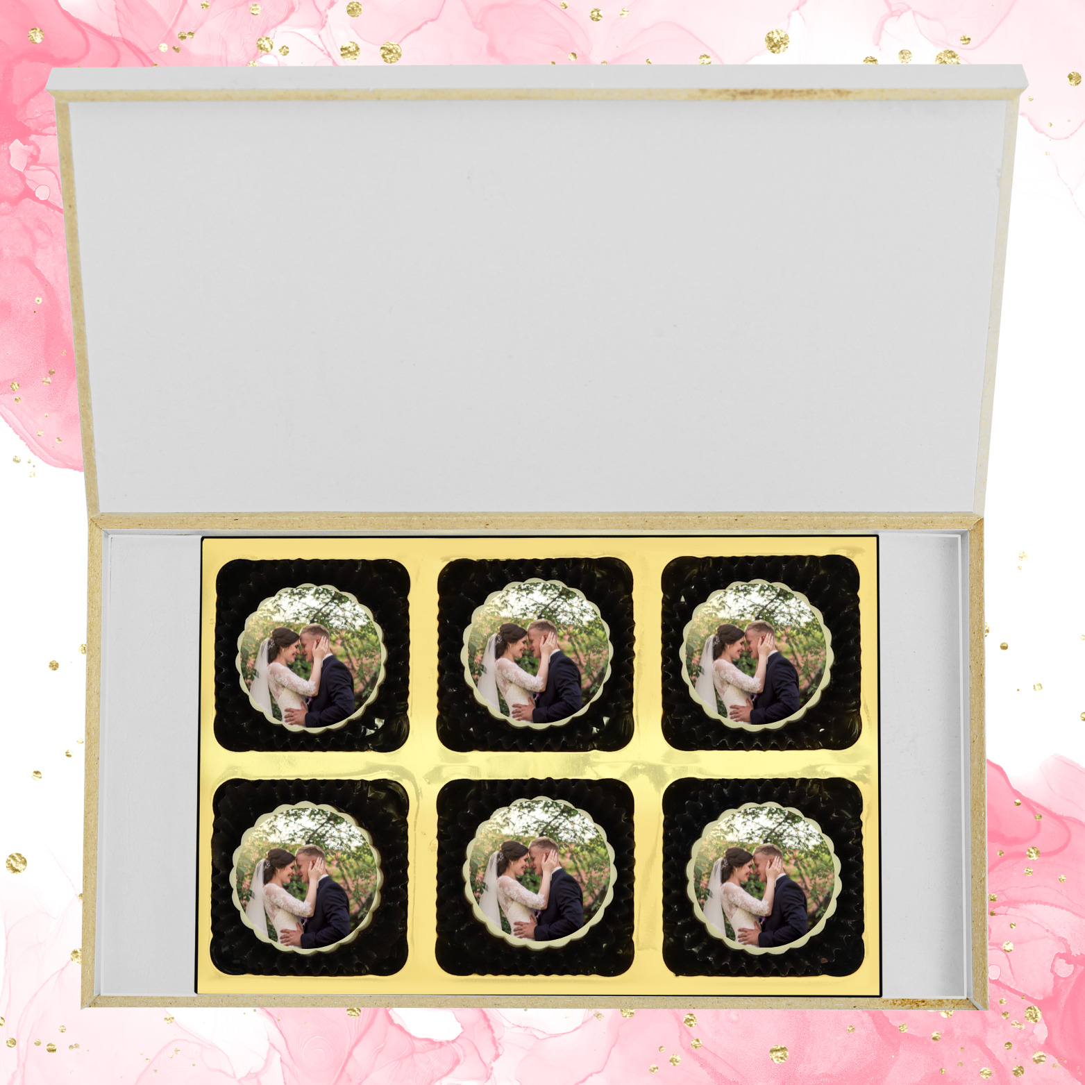 • Printed Chocolates - Customization / Personalization done on the box & on the chocolates and Tailored Message is included. Printed chocolates have no filling.