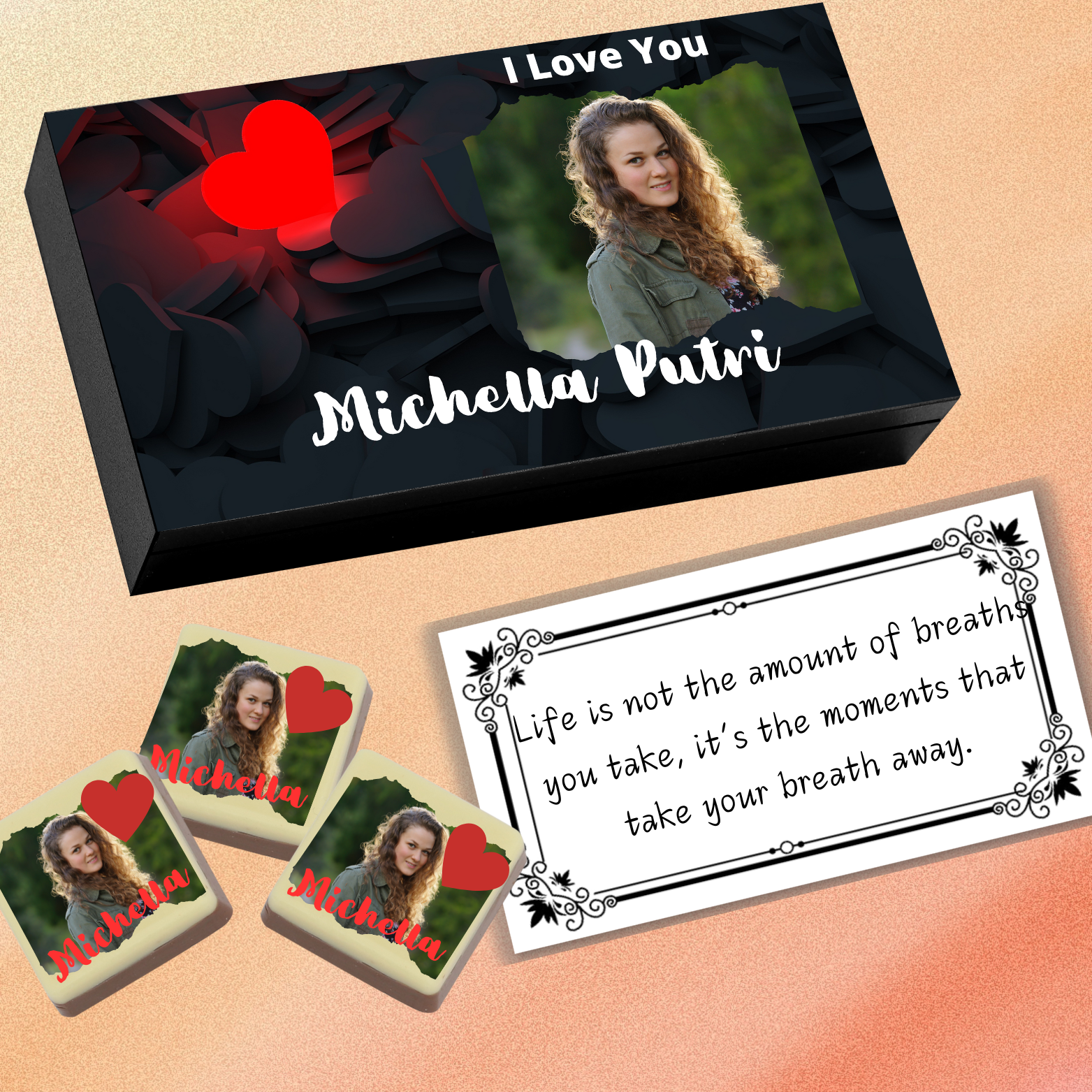 • Customers would get different variations of Chocolate Box colours, Chocolate shapes, Customization / Personalization including NAME, PHOTO & TAILORED MESSAGE as per the product ordered.