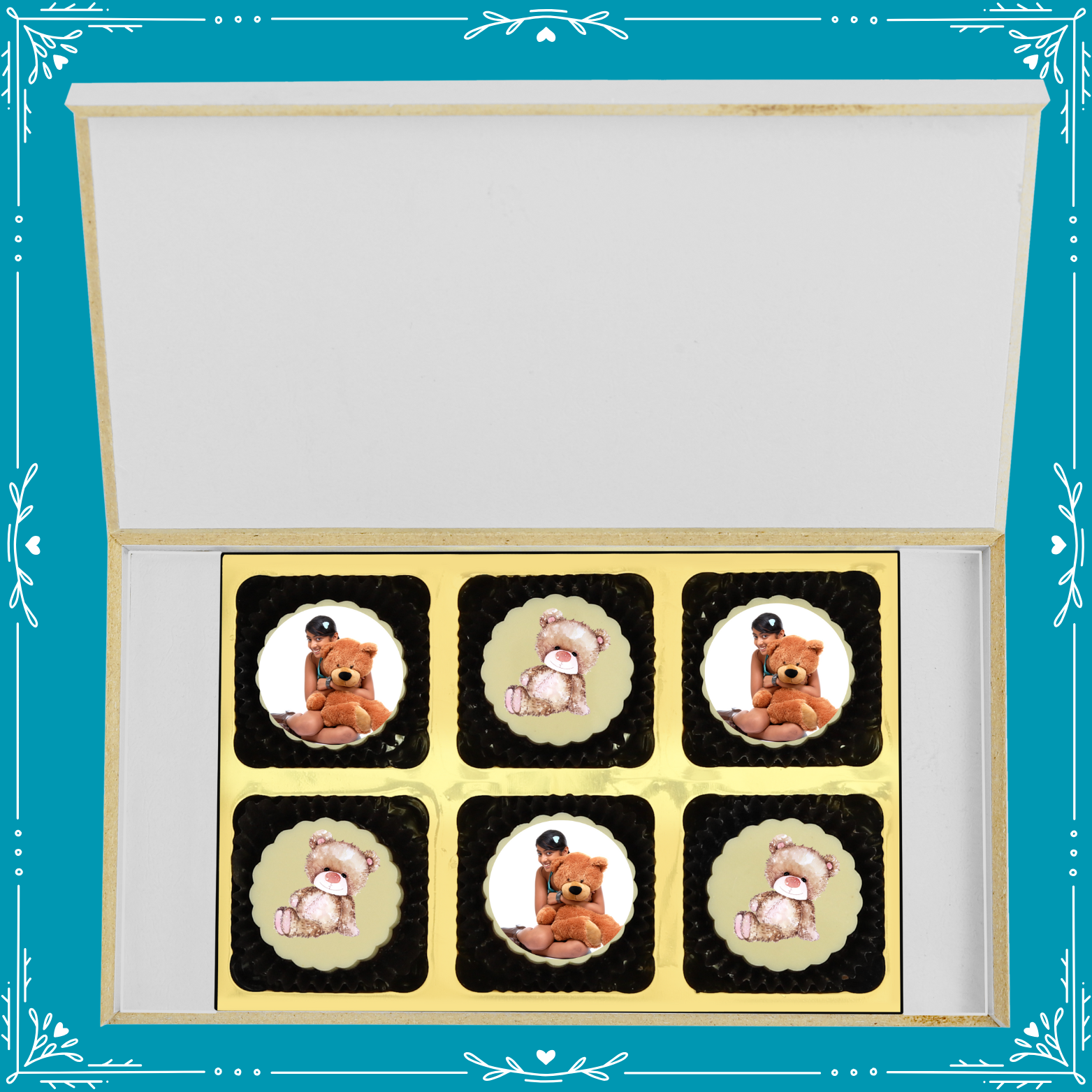 • Printed Chocolates - Customization / Personalization done on the box & on the chocolates and Tailored Message is included. Printed chocolates have no filling.